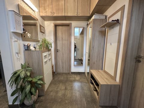 A LAKÁS: 10 évvel ezelőtt teljes körűen felújították. Egészen a vakolatig vissza bontva, minden vezetéket, nyílászárókat kicseréltek. Igényesen kialakított konyha, fürdőszoba. Esztétikus burkolatok.A fűtés, meleg víz ellátás,gáz cirkó készülékkel megoldott. Minden helyiség ablakkal ellátott, a kamra is. A szobák napfényesek, világosak. Mindkét szobában klíma került felszerelésre.