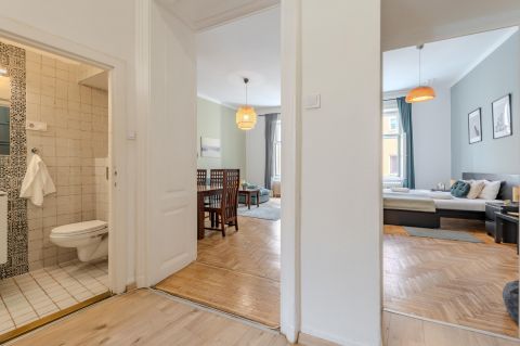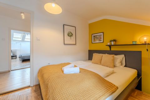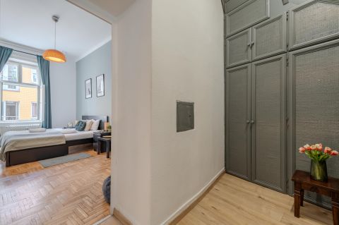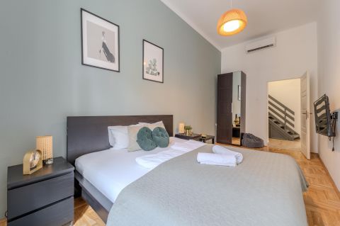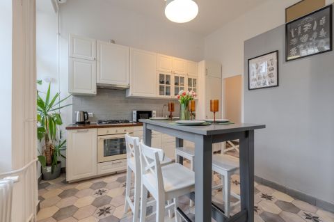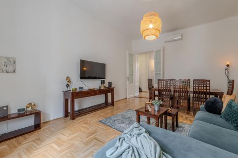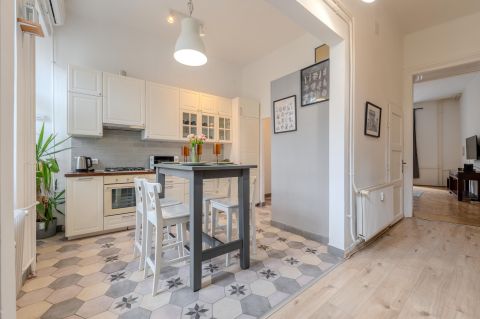 Its the epicenter of Budapests nightlife and cultural scene, yet the apartment itself offers a quiet, homely atmosphere a true urban gem.