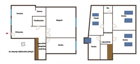 130 nm, nappali + 4 külön nyíló hálószoba