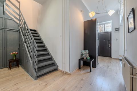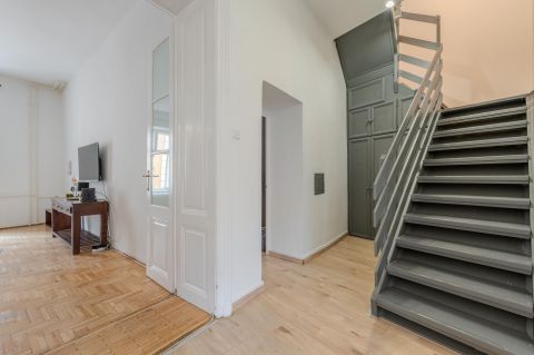 In the very heart of Budapest, in District VII one of the citys most popular and vibrant areas a 130 sqm duplex apartment is for sale at the corner of Dob Street and Kazinczy Street.