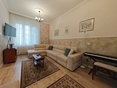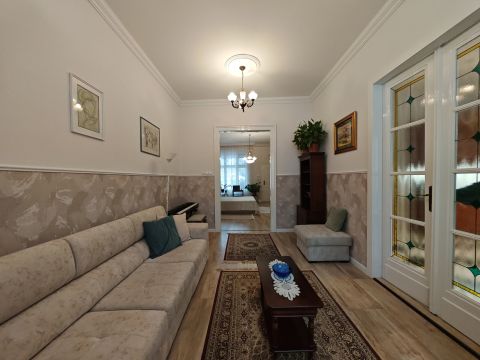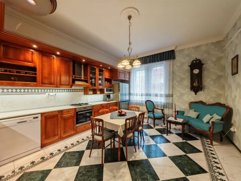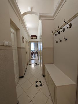 A ház homlokzata négy éve korhű felújításon esett át, amely a ház belső tereiben is folytatódott. Kulturált lépcsőházon keresztül jutunk fel a magasföldszintre, ahol a lakás található. Nagy belmagasságú, tágas terek fogadnak bennünket mindenhol a teljes felújításon átesett 4 szobás lakásban. Élvezet körbe sétálni a lakásban, majd kilépni a 30 m2 -es teraszra, ahonnan a tágas kert érhető el. A századeleji hangulatot nem befolyásolva modernizálták a lakás energetikai rendszerét: gáz cirkó fűtés, felújított nyílászárók biztosítják a kellemes közérzetet.