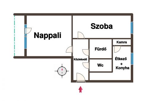 - nappali + 1 külön nyíló szoba