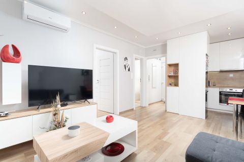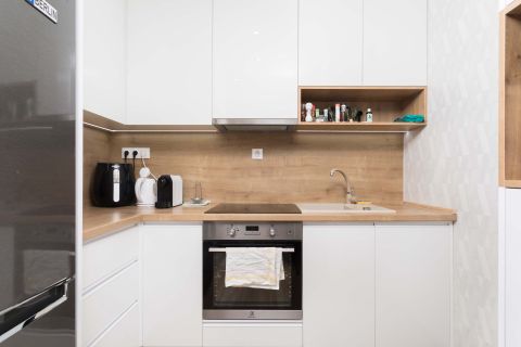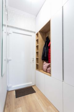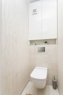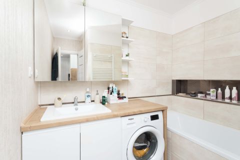 - A lakásban a világos beige színek és a LED világítás minden helyiségben a modern és világos térérzetet erősítik.