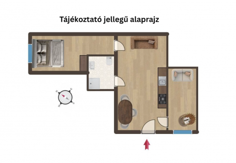1 + fél szobás, praktikus beosztás