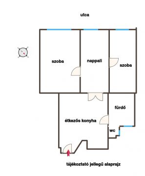 Nappali + 2 háló, nagy étkezős konyha és egy tágas fürdőszoba található benne.