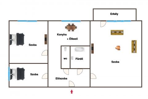 - jó elosztású 3 szobás 55 nm-es ingatlan.