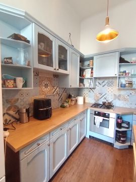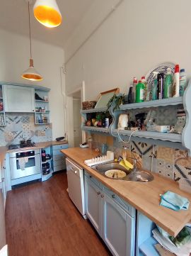 A Városliget közelében, a Szinva utcában eladó egy 100 nm-es, jó állapotú, nagy polgári lakás a 3. emeleten.