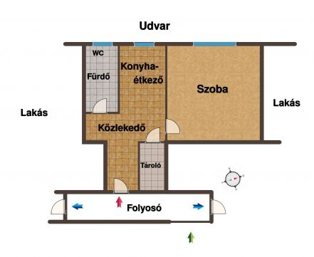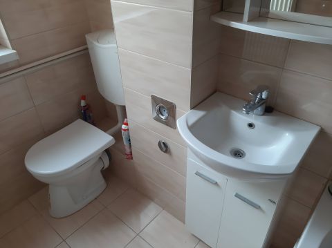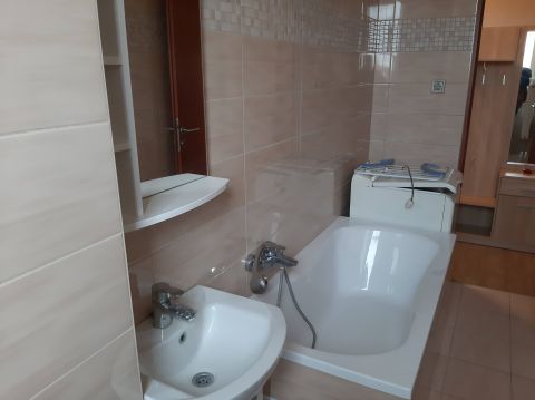 Fürdőszobája kádas. A konyha - étkező méretéhez képest tágas nagy konyhai pultal, sok tárolási lehetőséggel. A konyhapultban beépítve a lakás lelke a kombi gáz cirkó.