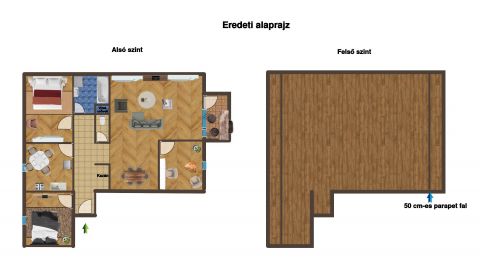 A felső szint privát életteret biztosít: hálószoba, nappali, fürdőszoba és tároló kap helyet, így az ingatlan ideális lehet nagyobb családok részére, prémium bérbeadásra vagy hosszú távú értéknövelő befektetésként is.
