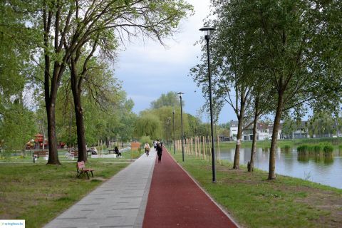 A tó körül salakos futópálya, padok, stégek, sütögető és grillező helyek, egy hatalmas méretű, modern, fa játszótér, a tóban pedig egy megvilágított szökúkút biztosítja az itt élők prémium életérzését.