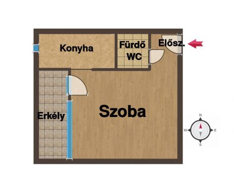 -1. emeleti, 27nm-es, elosztása: szoba, konyha, fürdő Wc-vel, erkély,