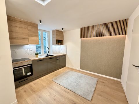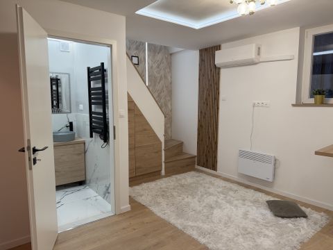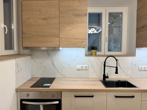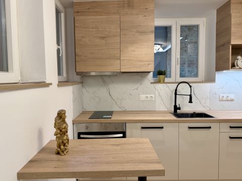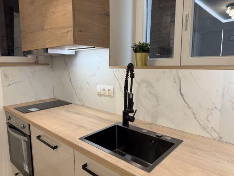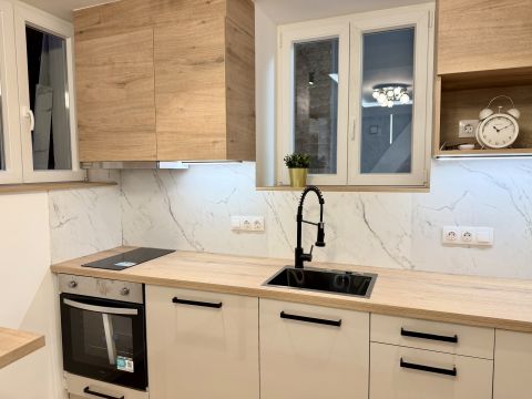 - a lakás teljes berendezéssel elérhető: rejtett tároló, gépesített konyha