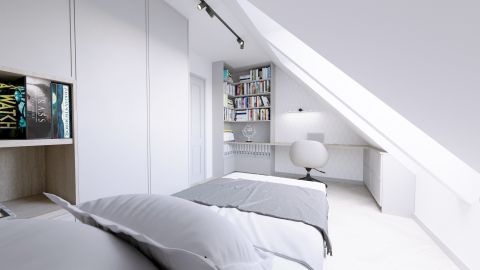 A nappaliból induló lépcsőn keresztül jutunk a tetőtérbe, ott 2 szoba, fürdő és wc, továbbá háztartási helyiségek találhatók.