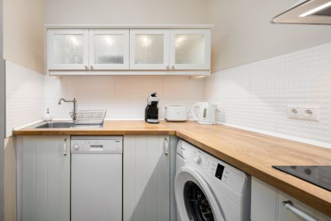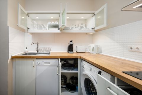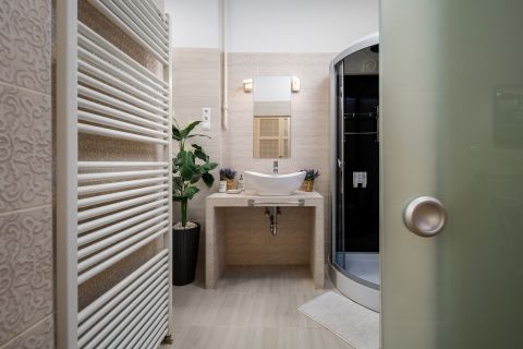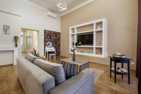 Minőség: A lakás modern és stílusos belső terei mindenben megfelelnek a mai igényeknek. A felújítás során figyeltek a tartósságra és az esztétikára, így további ráfordítást nem igényel.