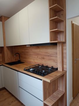 A konyha új gépekkel beépített, mosógéppel, mosogatógéppel. A lakás teljeskörű felújításon esett át, minden igényesen kialakított.