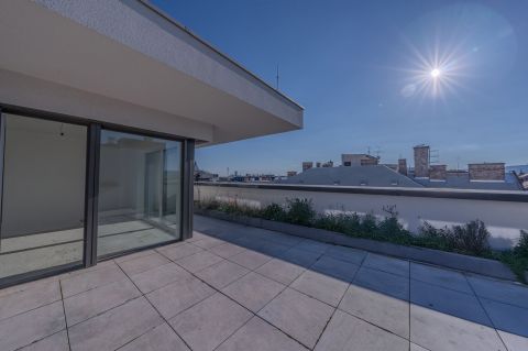 Eladó félkész panorámás penthouse a Tolnai Lajos utcában hatalmas teraszokkal