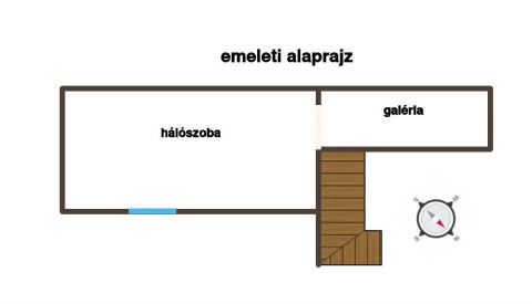 Ezen a szinten helyezkedik el a konyha-étkező, az egy helyiségben lévő fürdőszoba és wc, illetve egy teljes értékű hálószoba, míg a felső szinten egy különálló, világos szoba kapott helyet, amely ideális hálónak, dolgozószobának vagy gyerekszobának is.