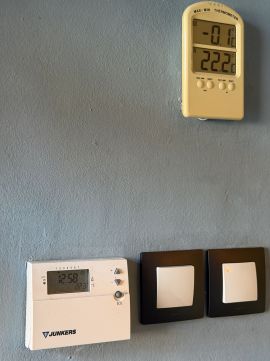 Junkers gas boiler with radiator heating and private lined chimney independent and economical heating system