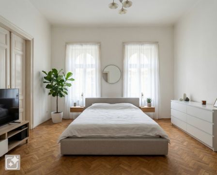 A jól karbantartott, zöld udvarral rendelkező, liftes ház 1880-ban épült, a lakás az 1. emeleten található, zárt folyosóról nyílik. Az előtérből lépünk a konyhába, ami mellett kamra is található. A közlekedőből nyílik egy előtér, onnan a fürdőszoba és egy külön WC. Mindkét szoba tágas, a sarokszobából akár két helyiség is kialakítható. Fűtése kedvező, cserépkályhába épített villanyfűtés. A lakáshoz tartozik egy tároló a pinceszinten. A villanyvezetékek kb. 8 éve részben fel lettek újítva, 1 éve pedig mérőórákat cseréltek.