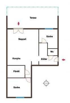 -Elosztás: Nappali + 2 külön szoba, fürdő és WC.