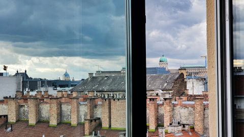 A hatalmas ablakokból lélegzetelállító, csodás kilátás tárul elénk.