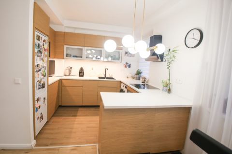 Elosztás: A lakás központja a tágas, napfényben úszó amerikai konyhás nappali és étkező, amely közvetlen kijárást biztosít a nagyméretű teraszra.