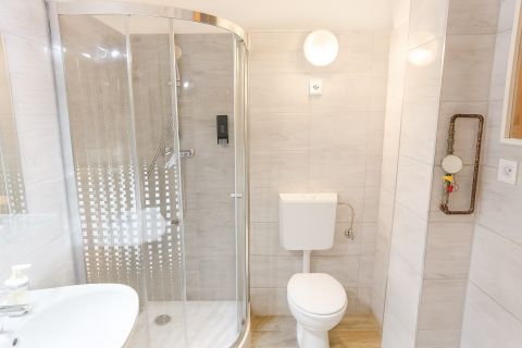 modern fürdőszoba, elektromos vezetékek cseréje, valamint új klíma is