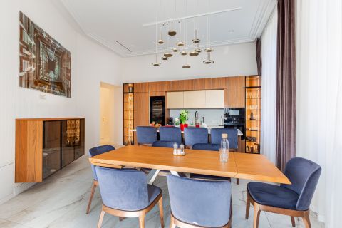 Budapest egyik legpatinásabb sugárútján, az Andrássy úton kínálunk bérbevételre egy nagypolgári eleganciát és kortárs luxust ötvöző, 180 m²-es, reprezentatív otthont.