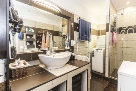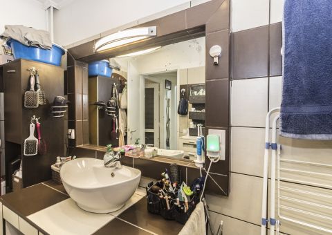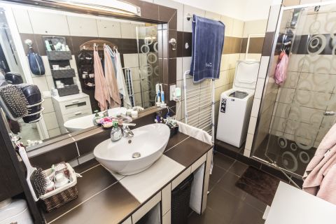 - Fürdőszoba felújítása és bővítése a nappaliból leválasztott résszel.