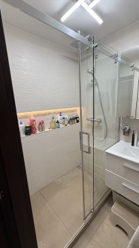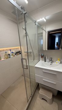 - tágas, igényesen kialakított zuhanyzós fürdőszóba , Hansgrohe csapteleppel.
