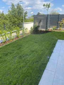 Privát kert: 200 m² elkerített, füvesített, automata öntözőrendszerrel, bokrosítva