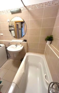 szintén innen nyílik a külön a fürdőszoba és a mellékhelyiség, valamint egy praktikus háztartási helyiség, mely használható mosókonyhaként, tárolóként, gardróbként is.
