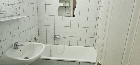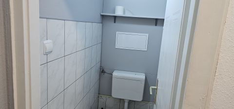 Az ingatlan praktikus alaprajzzal rendelkezik: a lakás központja egy rendkívül világos konyha, a közlekedőben faltól falig beépített gardróbszekrény biztosítja a kényelmes tárolást. A fürdőszoba és a WC külön helyiségben kapott helyet, ami a mindennapokban különösen komfortos megoldás.