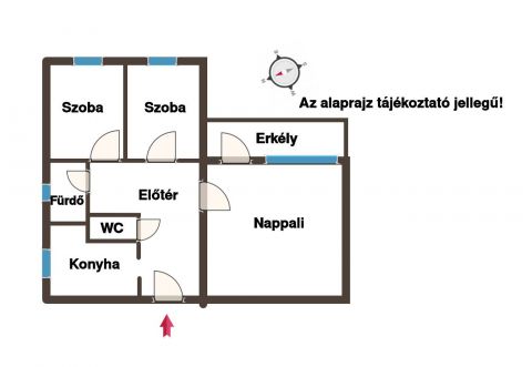 - 55nm alapterületű, kiváló elrendezésű, nappali+ két szobás