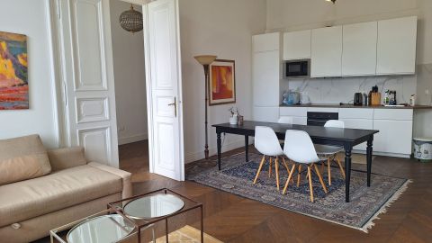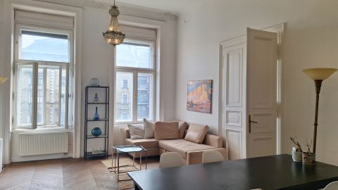 A VII. ker. a Rákóczi úton, emeleti,erkélyes, 106 m2-es, duplakonfortos, 4 szobás lakás kiadó hosszú távra!