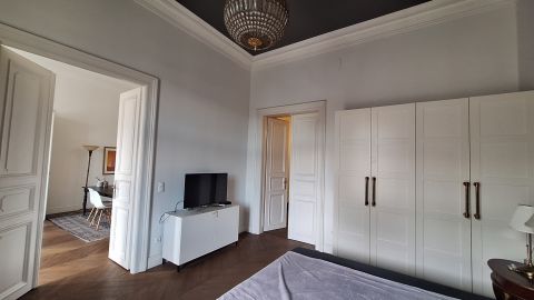 In the 7th distr. on Rákóczi út, a high floor apartment with balcony, double comfort, 4-room apartment is up for long-term rent!