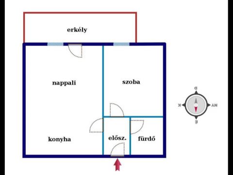 A lakás déli fekvésű, amerikai konyhás nappalival, külön bejáratú hálószobával rendelkezik.