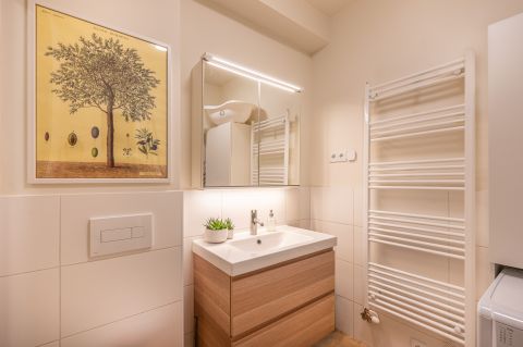 A lakás ideális választás azok számára, akik szeretnének egy csendes, zöldövezeti környezetben, mégis kitűnő infrastruktúrával ellátott környéken új otthonra találni.