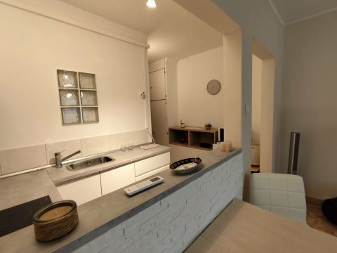 A kompakt méretek ellenére jól átgondolt kialakításának köszönhetően minden funkcionális zóna kényelmesen elfér. A konyha és a nappali közötti fal megnyitásra került, emiatt a konyha is világos és szellős, az egész lakás benapozott. Az ingatatlan bútorozott, a konyhában az alábbi gépek vannak, hűtőszekrény, főzőlap, mikró, és a fürdőszobában mosógép.