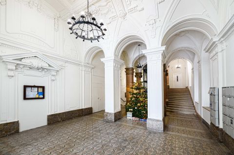 公寓楼采用晚期折衷主义风格建造,状况极佳,拥有布达佩斯最漂亮的楼梯间之一,配有金属玻璃结构的宽敞电梯。该公寓楼由建筑师赫尔特尔·德兹绍设计。