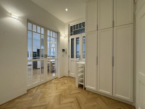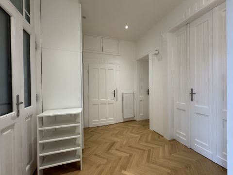 Bright and spacious 3-room apartment with a balcony offering beautiful views of peaceful Paulay Ede Street and its elegant historic buildings located in the heart of Budapest near Andrássy Avenue, Liszt Ferenc Square, and the Opera House. The flat is on the 4th floor of a stunning 1912 Art Nouveau building.