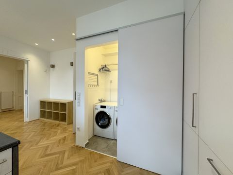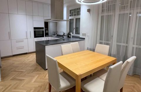 A lakás teljeskörűen felújított, bútorozás igény szerint megoldható. Magas minőségű felszerelés: klíma, beépített konyhai gépek (sütő, főzőlap, mosogatógép), mosó- és szárítógép, elektromos redőnyök, függönyök.