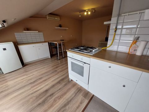 Baja szűk belvárosában 58 m2-es 2 szobás 4.emeleti klímatizált tetőtéri lakás rendezett társasházban eladó.