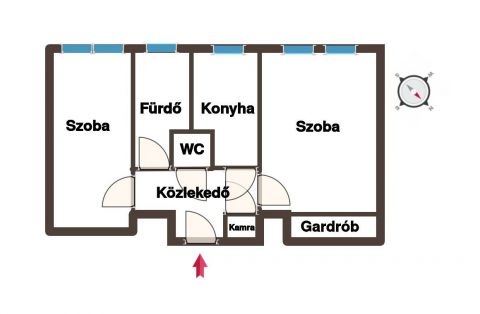 Az ingatlan kiváló adottságokkal rendelkezik, két külön nyíló, nagy méretű, egész szoba, ablakos, világos konyha, fürdőszoba, külön-bejáratú mellékhelyiség, közlekedő, előszoba, kamra és gardrób került kialakításra.