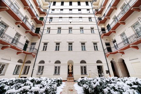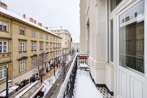 Az Október 6. utca egyik legszebb, patinás épületében, az Abigél szoborral díszített házban kiadó egy 2. emeleti, 69 nm-es, 2 hálószobás, erkélyes lakás.