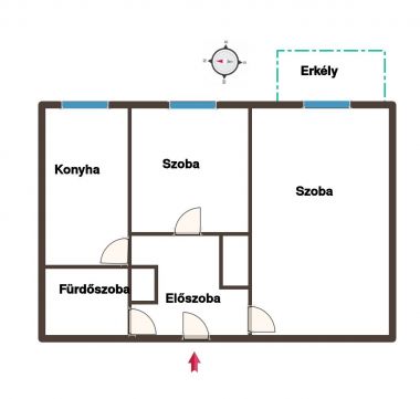 - helyiségei: 1,5 szoba, konyha, fürdőszoba és wc egy helyiségben, előszoba és erkély