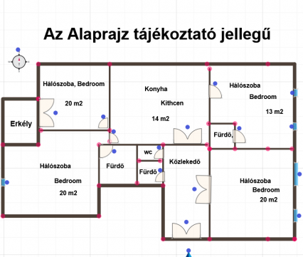 4 különnyíló hálószoba (20 m² + 20 m² + 20 m² + 13 m²)
