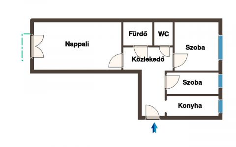Belépve az ingatlanba egy tágas előszoba fogad, ahonnan jobbra a világos, praktikus elrendezésű konyha nyílik. Továbbhaladva a jobb oldalon két egymás melletti félszoba található, melyek ideálisak hálónak, dolgozószobának vagy gyerekszobának is. A bejárattal szemben kapott helyet a kádas fürdőszoba, mellette pedig külön helyiségben a WC. A lakás központi része a kellemes hangulatú nappali, amely franciaerkéllyel rendelkezik, és gyönyörű kilátást kínál a zöld, fás környezetre.