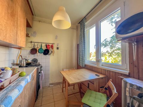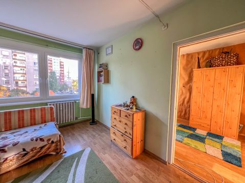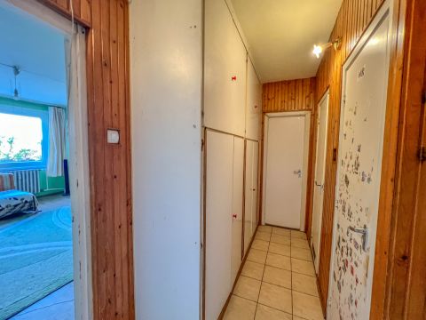 Az ingatlan elosztása kiváló, áll egy előszobából, étkezős konyhából, közlekedőből, 3 szobából, erkélyből valamint külön fürdőből és WC-ből, az állapota alapvetően felújítandó, azonban a lakás nyílászáróit már kicserélték. Az ingatlan a szomszéd lakással közös loggiáról nyílik, fűtésről és a meleg víz ellátásról távhő gondoskodik. A lakás DNY-i fekvése miatt bent egész nap jók a fényviszonyok, az erkély a házak közötti játszótérre néz.