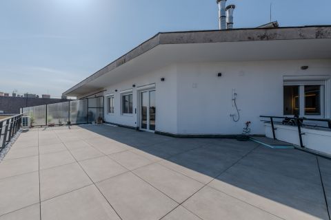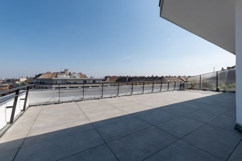 A 'Wow' faktor: A lakás ékköve a hatalmas, tetőterasz, amely méretéből adódóan alkalmas kerti partik rendezésére, privát napozásra vagy akár egy kültéri lounge kialakítására is. Ez a méret ebben a magasságban és lokációban igazi ritkaság!